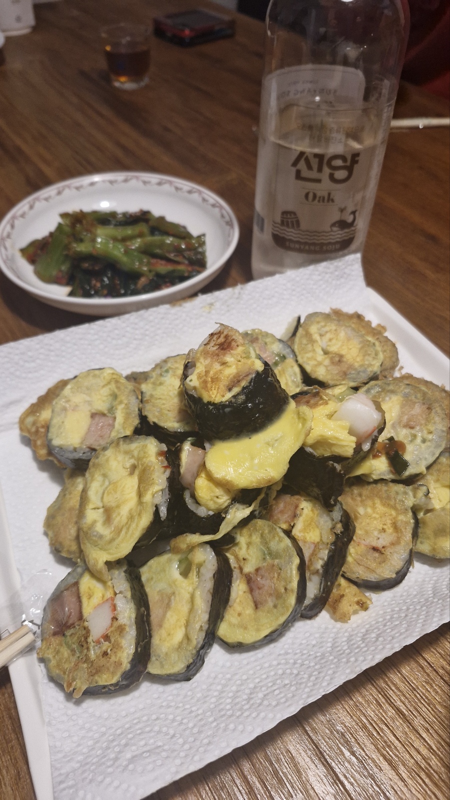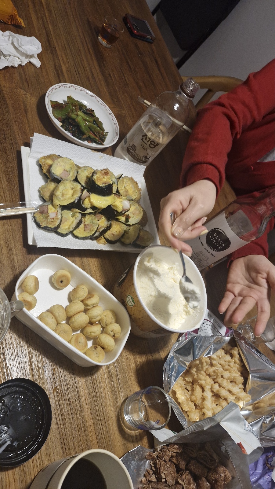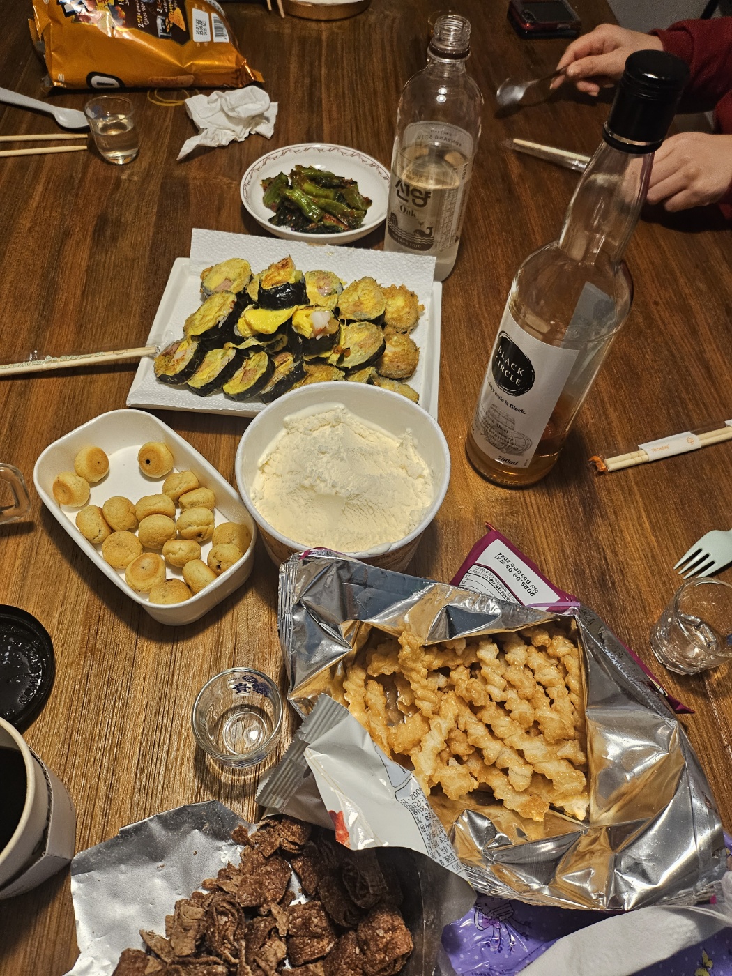 차라리 2차에서 먹었던 과자, 아이스크림이랑 먹을 땐 좀 더 잘 맞았던 거 같아(아참~ 남은 김밥으로 만든 전도 좋았어!ㅋ)