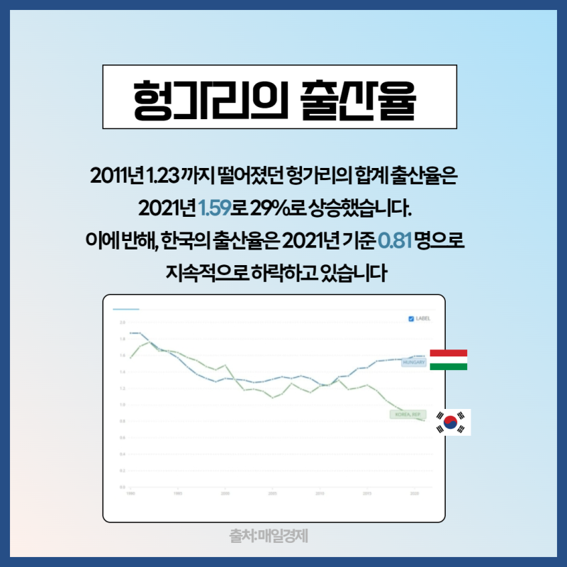 | 헝가리 | 실질적 자금 지원, 주택 대출 지원 | 출산율 1.21→1.56 상승 | 직접적 금융 지원 중심 |