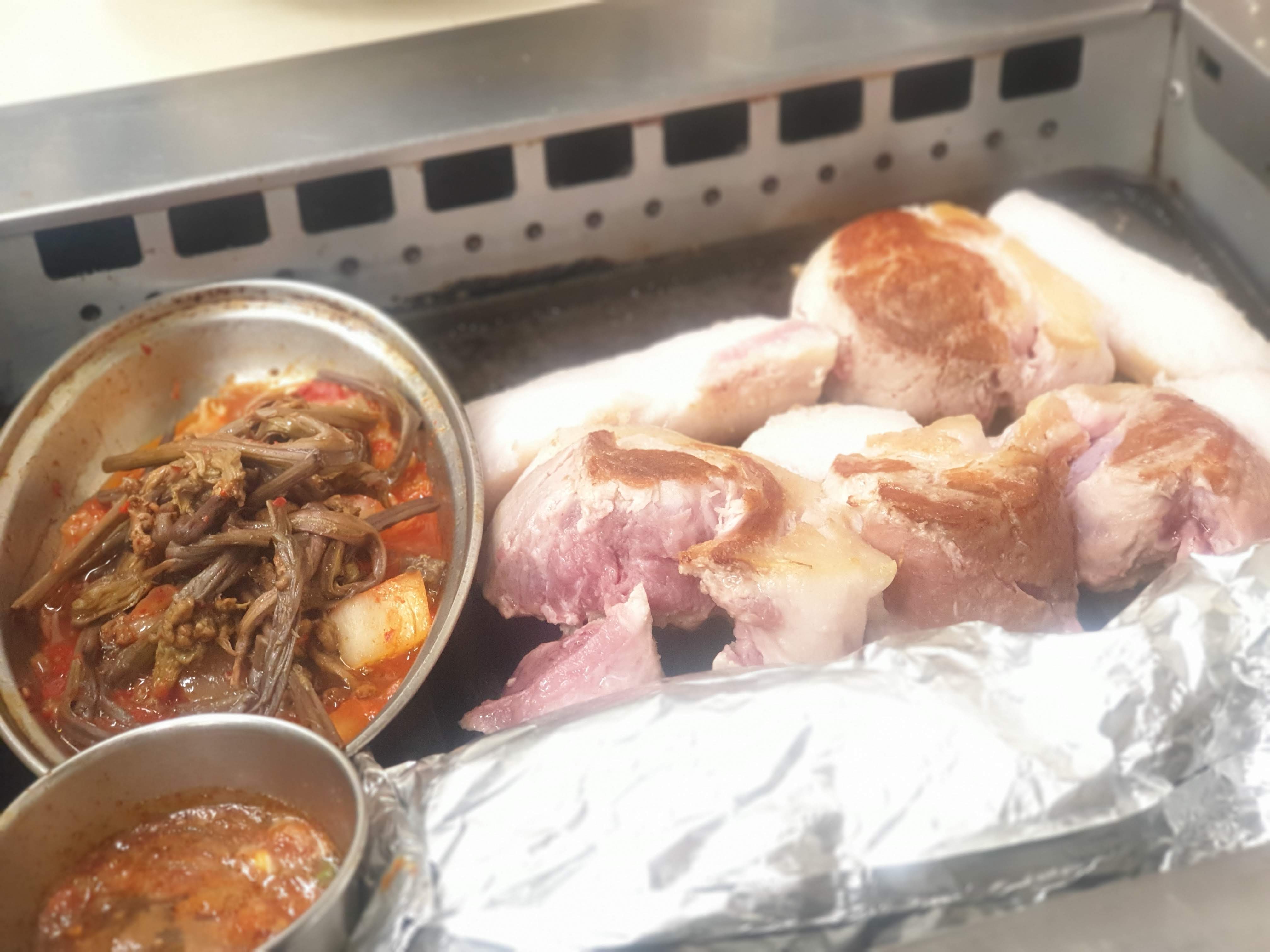 불판 위 고사리와 멜젓에 제주의 향이 스며 있다.