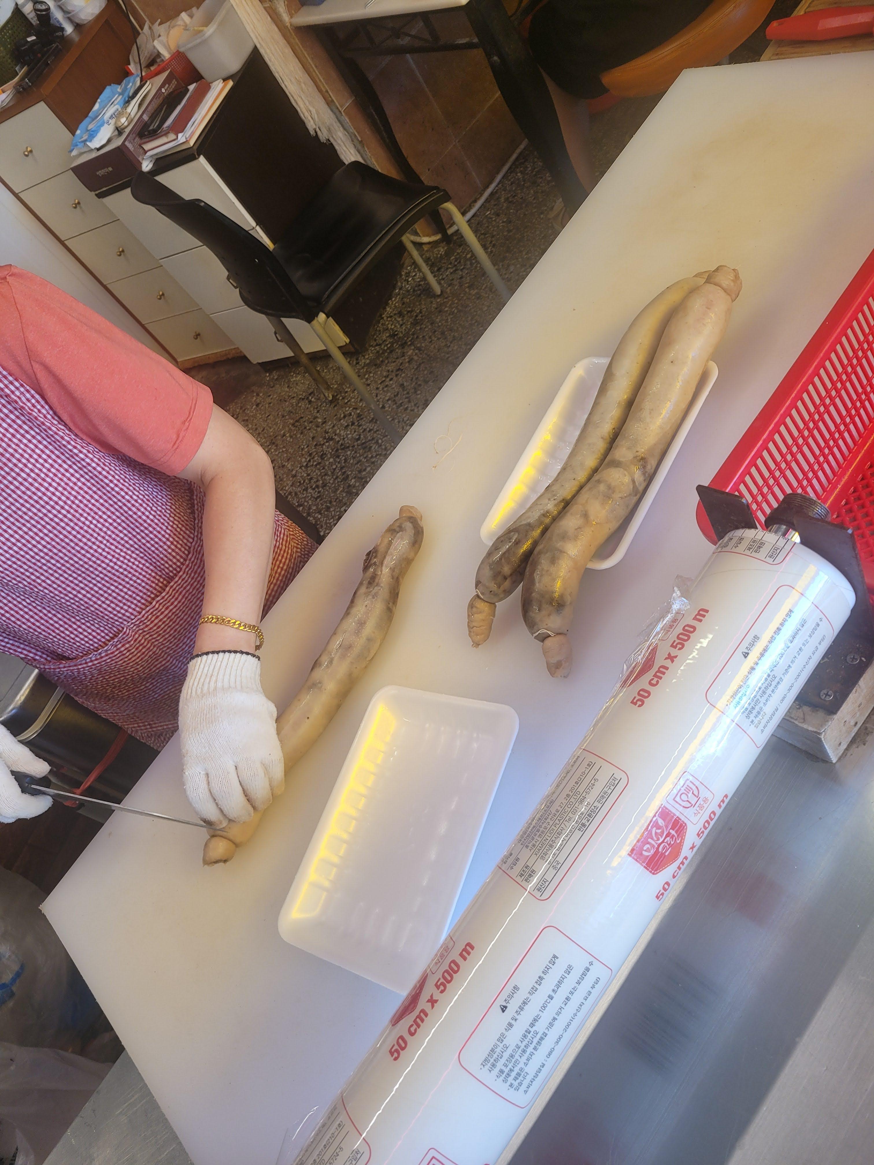 바로 커팅된 순대는 투명 포장지로 꼼꼼히 싸여, 열기를 오래도록 품은 채 손님에게 건네진다.🧼