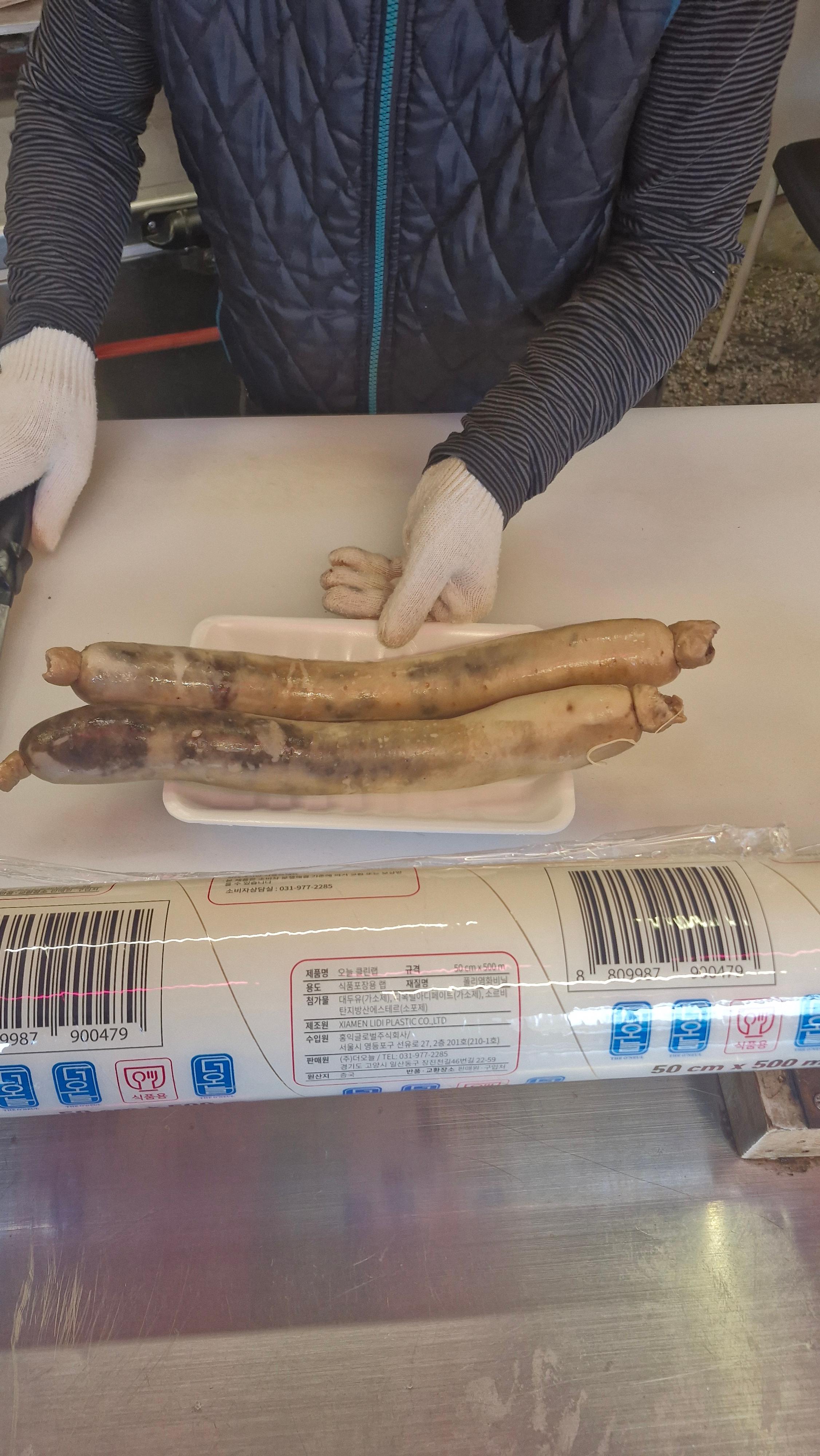 바로 커팅된 순대는 투명 포장지로 꼼꼼히 싸여, 열기를 오래도록 품은 채 손님에게 건네진다.🧼