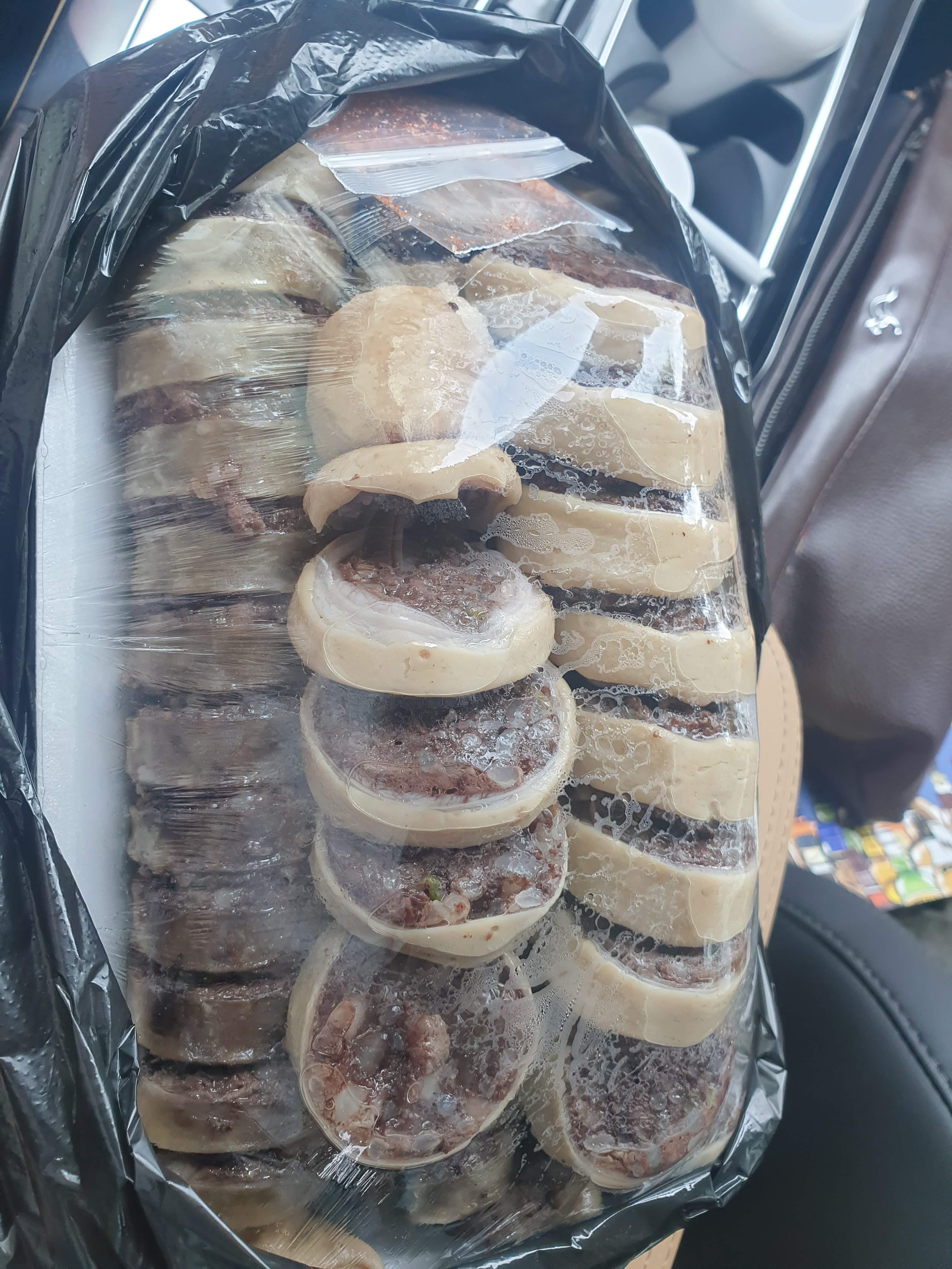 구매 후 차 안에서 바로 포장을 들여다보면, 순대 표면에 맺힌 김과 찹쌀알갱이의 윤기가 여전하다. 막 뜨끈하게 데쳐낸 생명력을 그대로 지닌 상태다.🚗💨