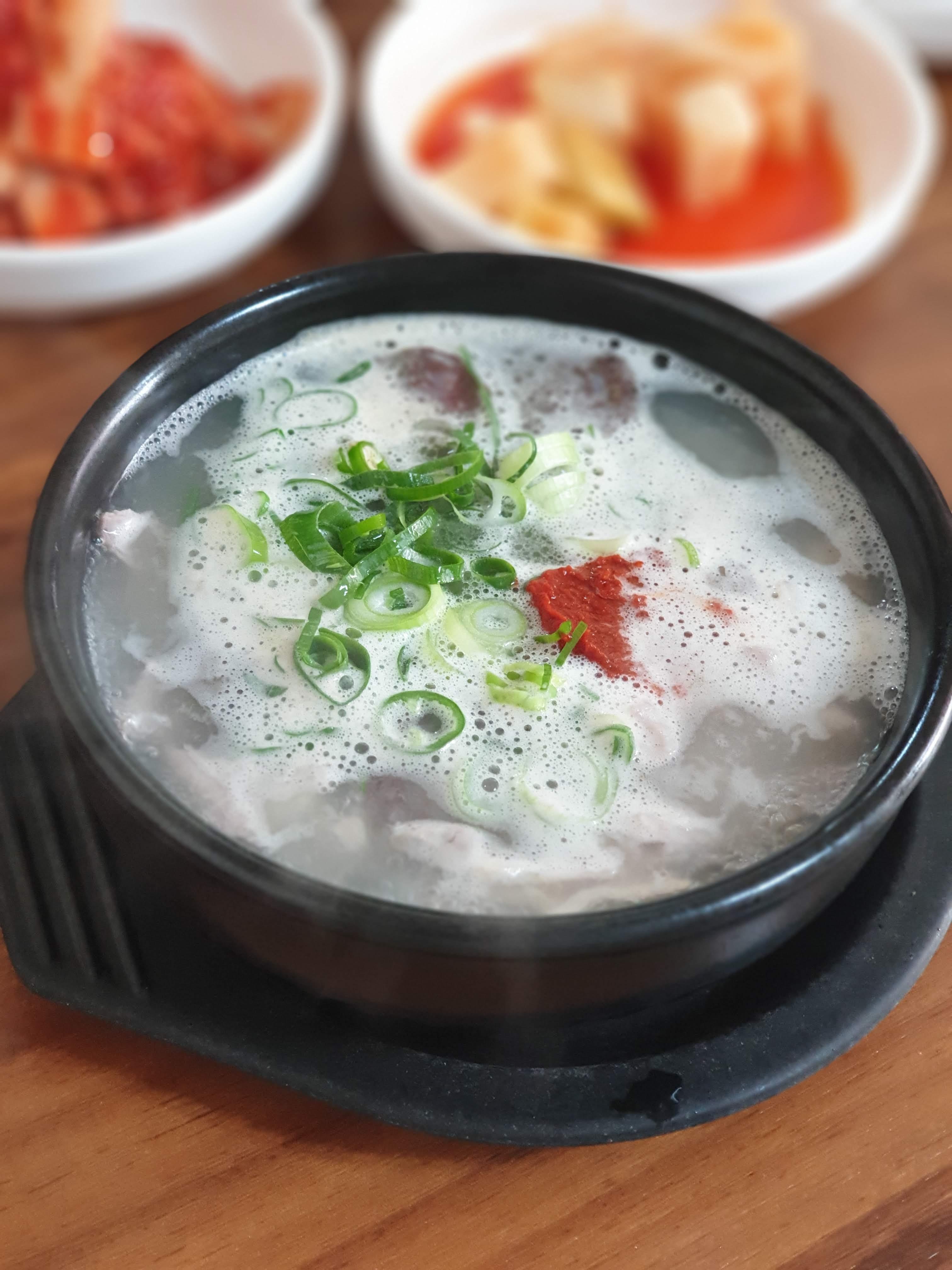 김이 모락모락 올라오는 잘 토렴된 국밥 위로