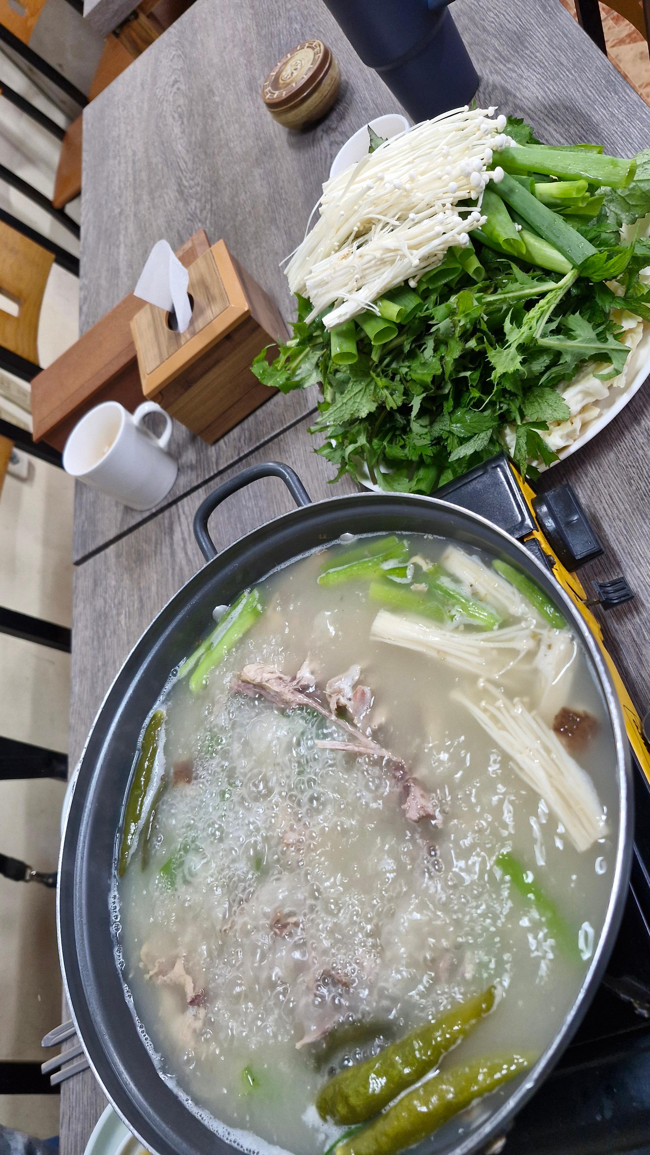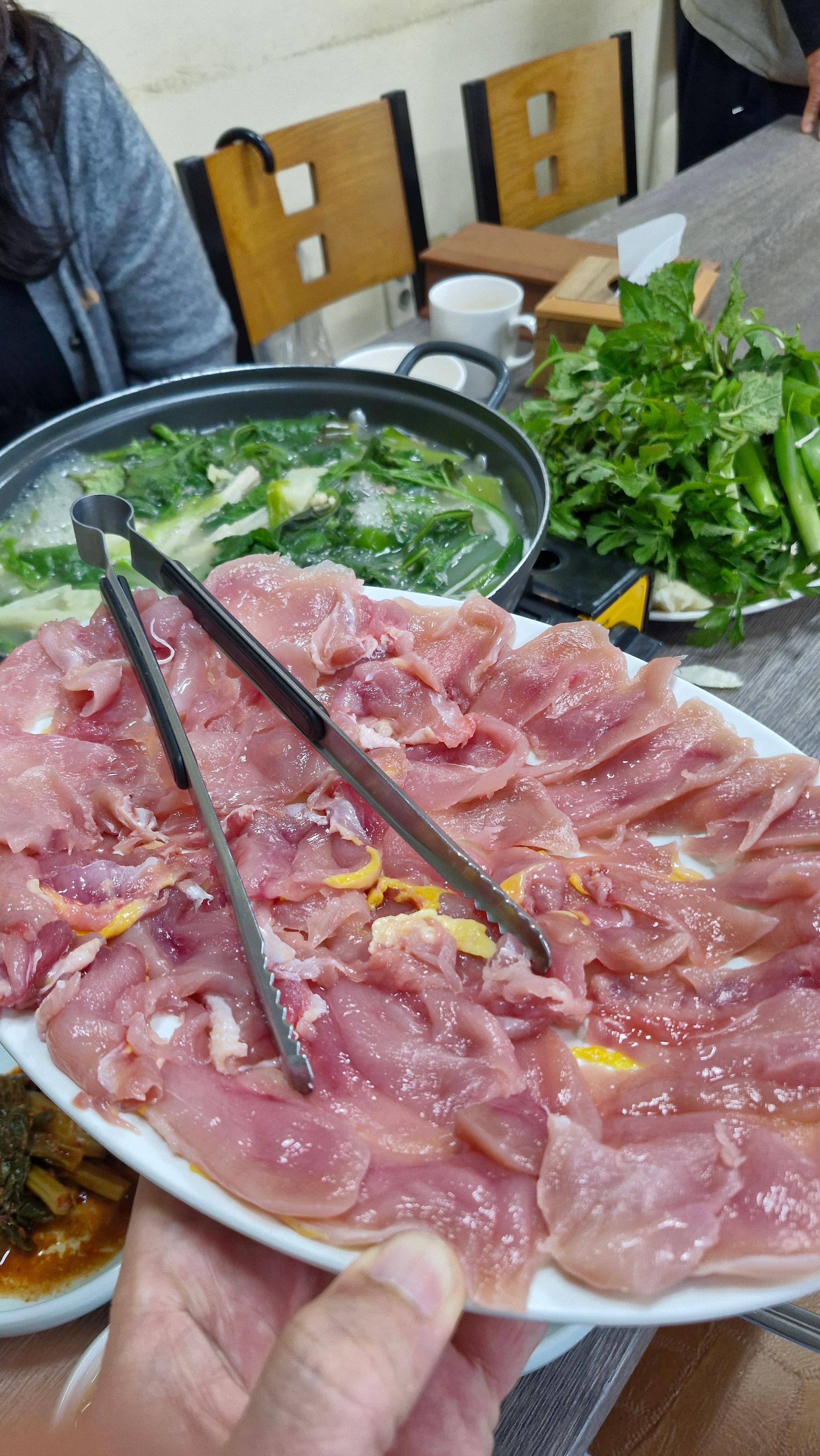 이곳의 메뉴 중 오늘 선택한 것은 꿩 샤브샤브.