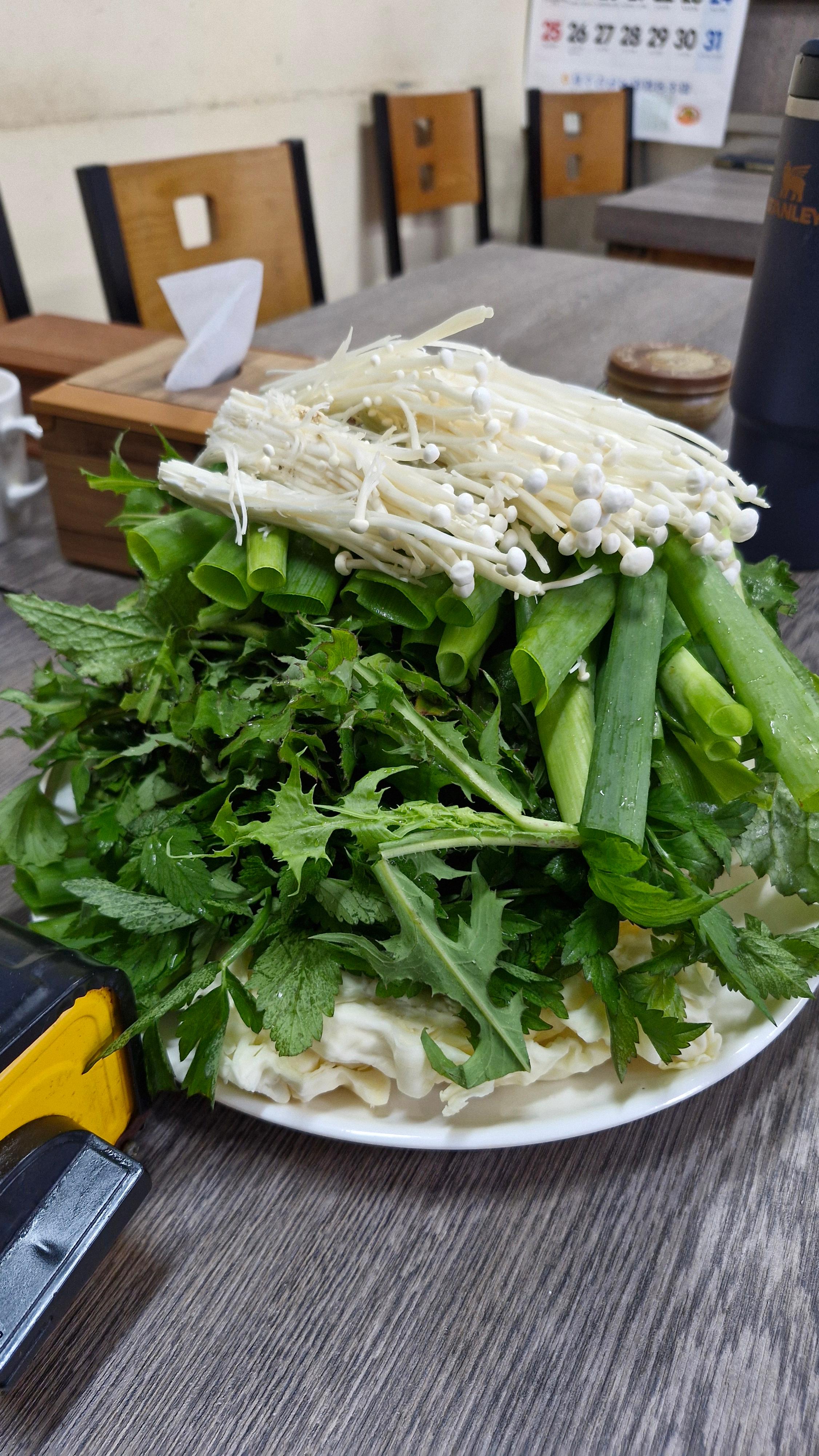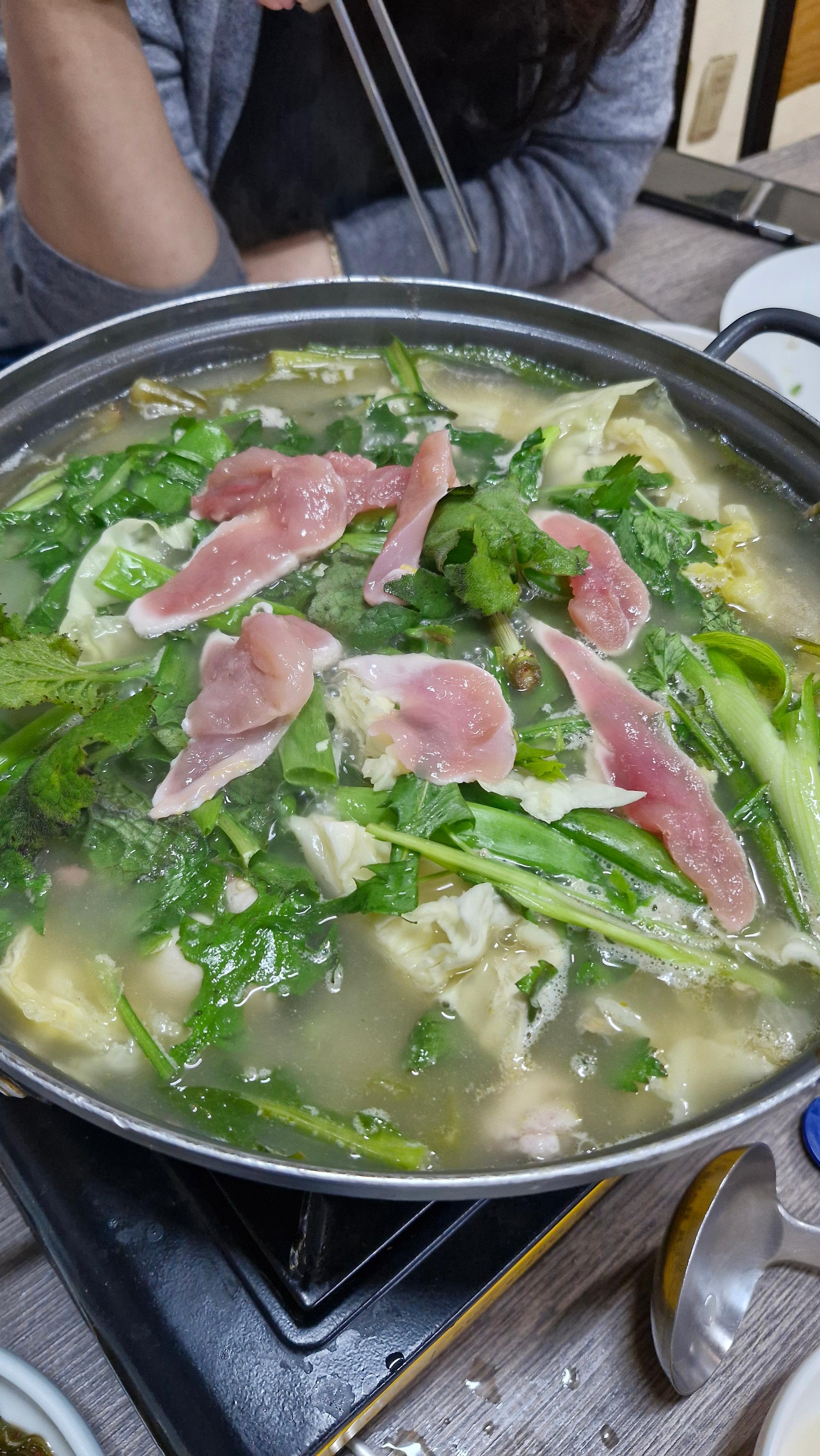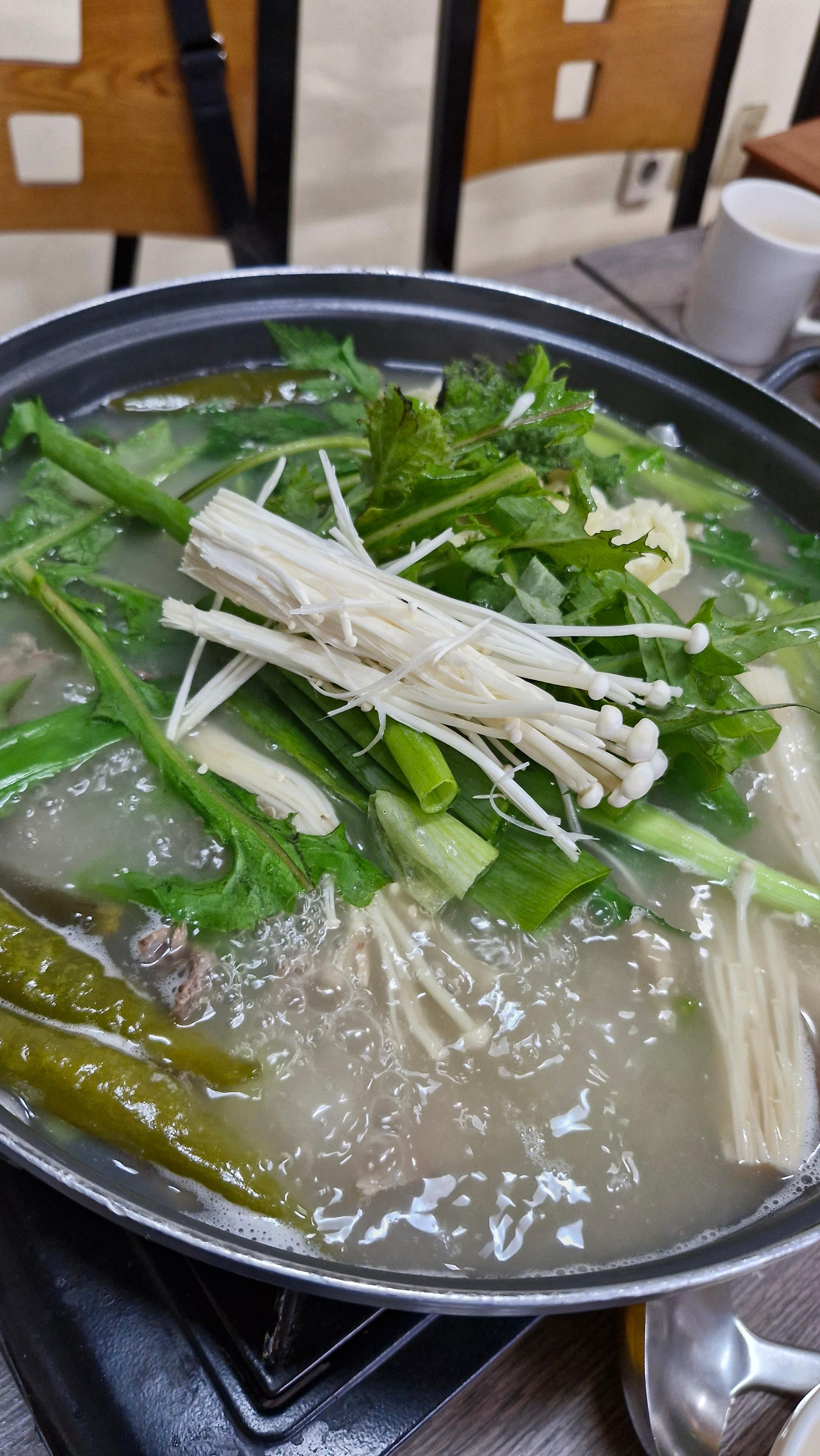 이 채소들을 꿩육수에 데쳐 먹는 맛이란, 정말 독보적이다.