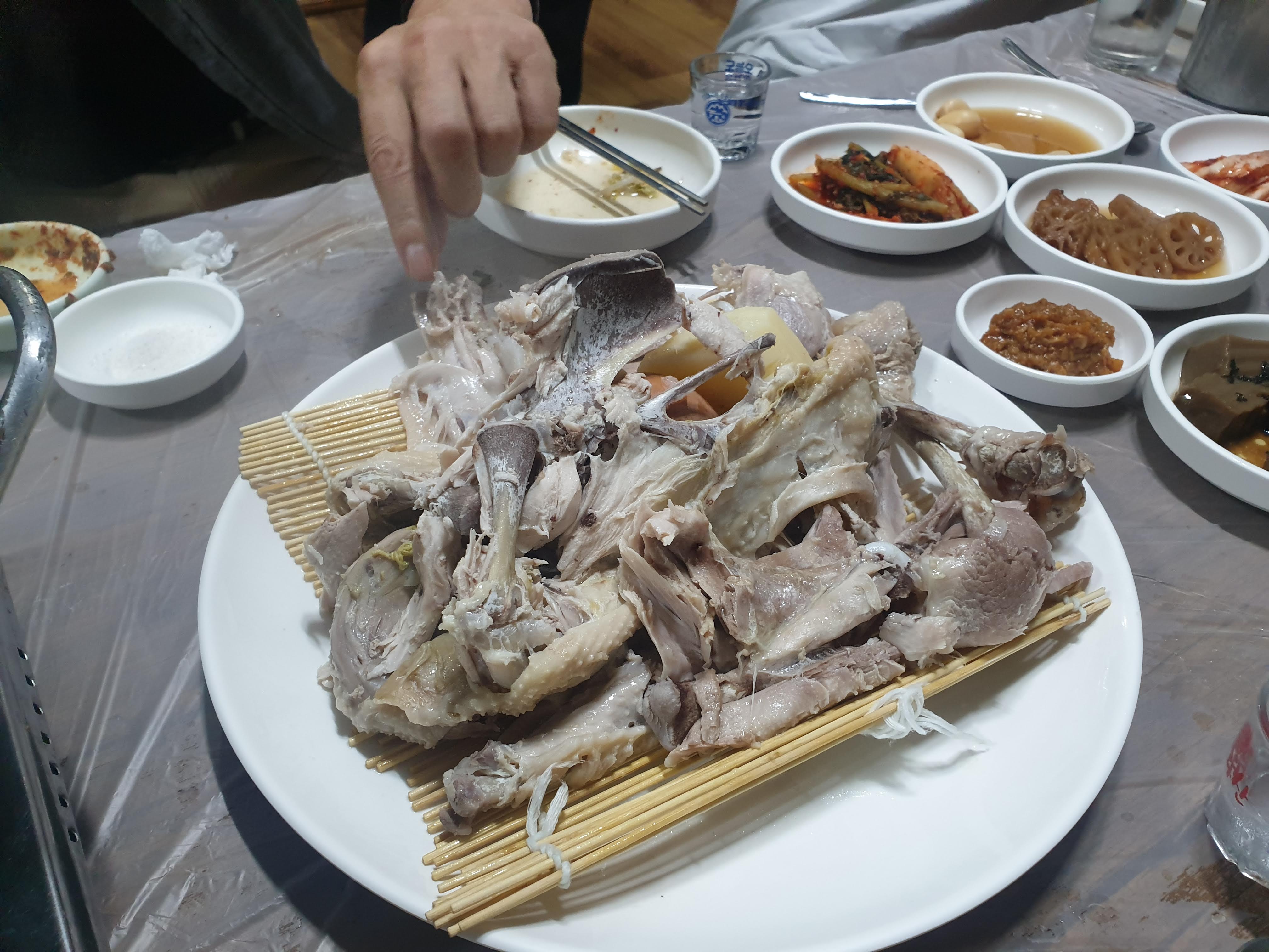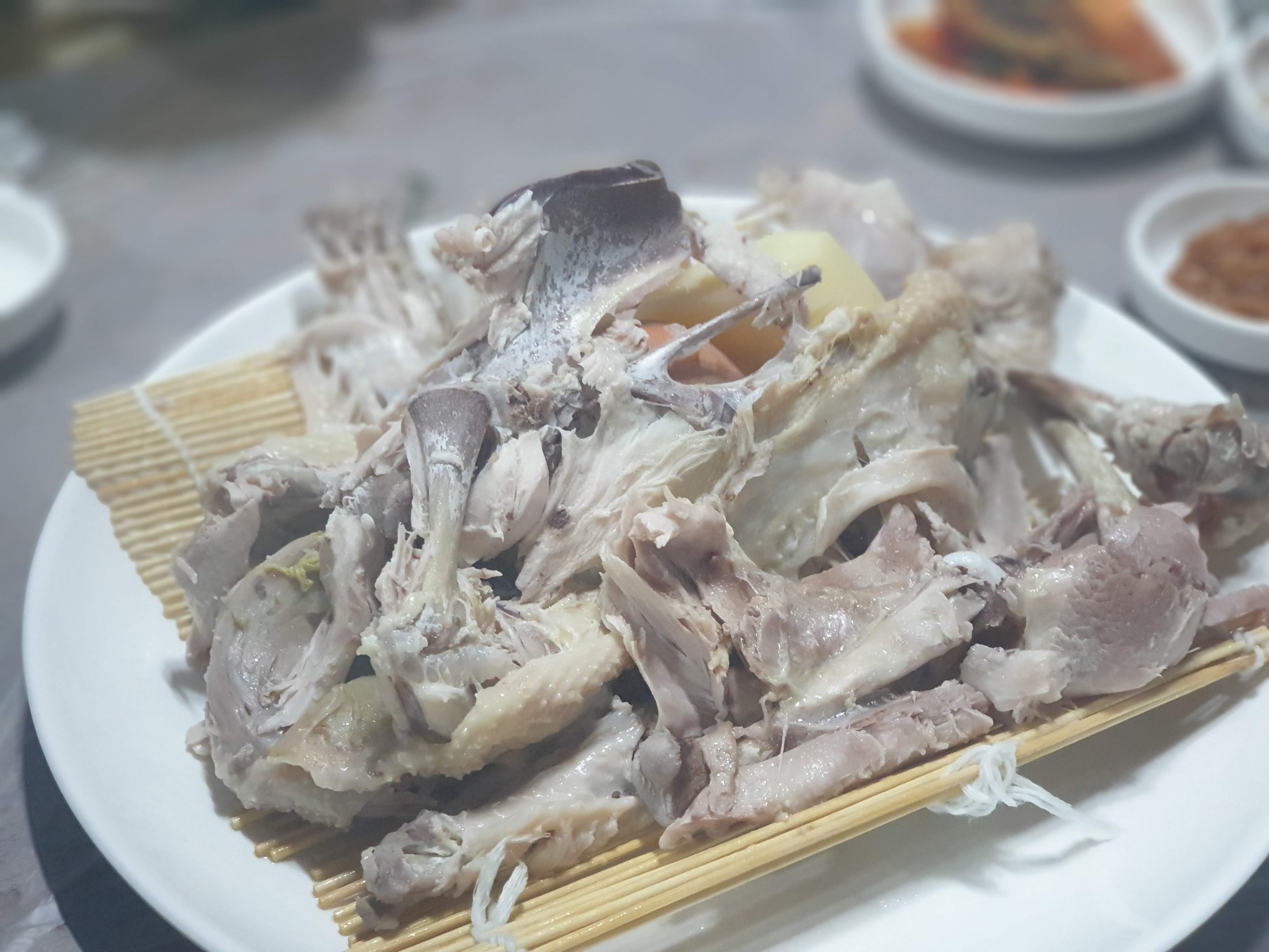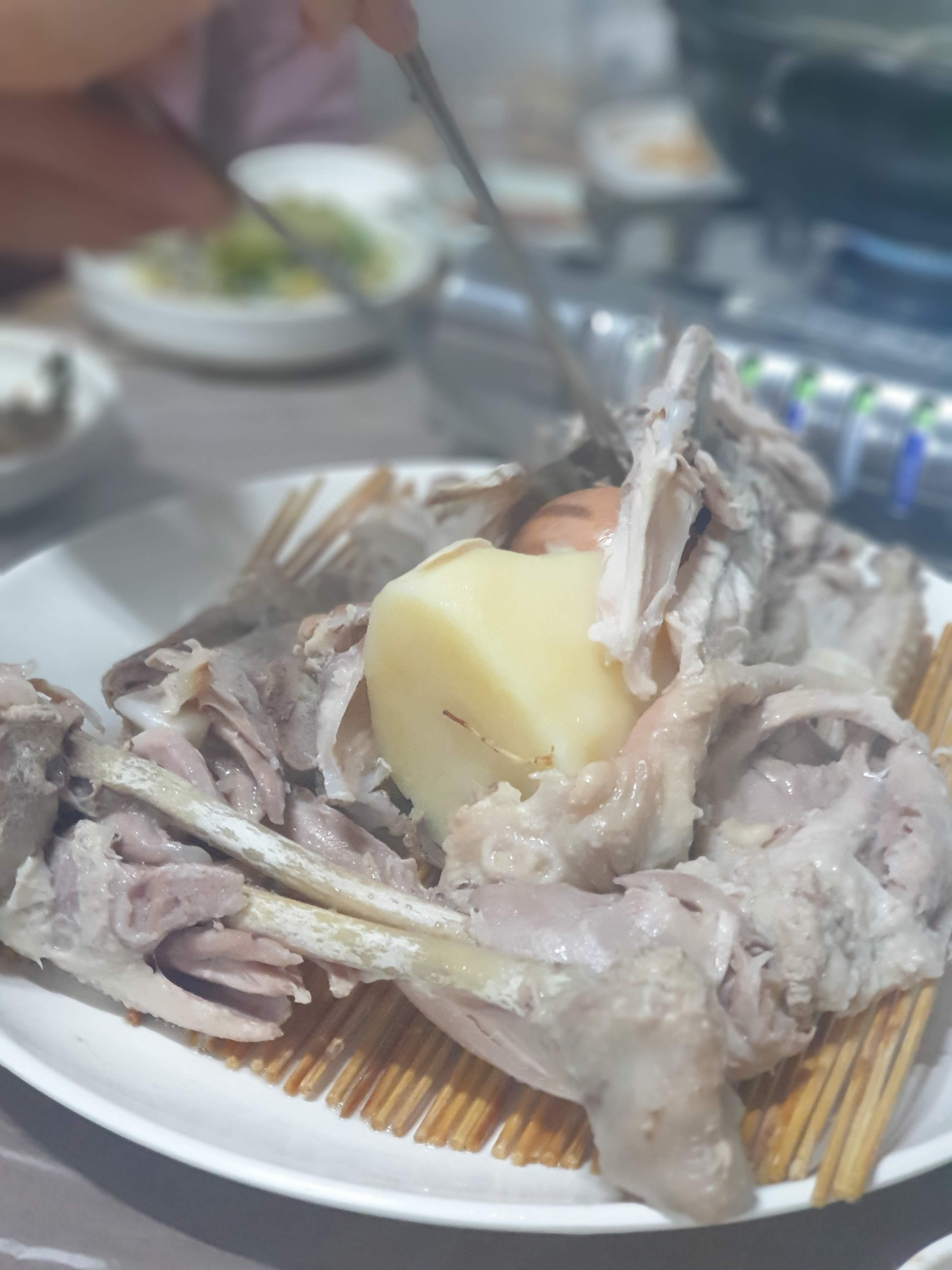 곧이어 푸짐한 토종닭 백숙이 상에 오른다.