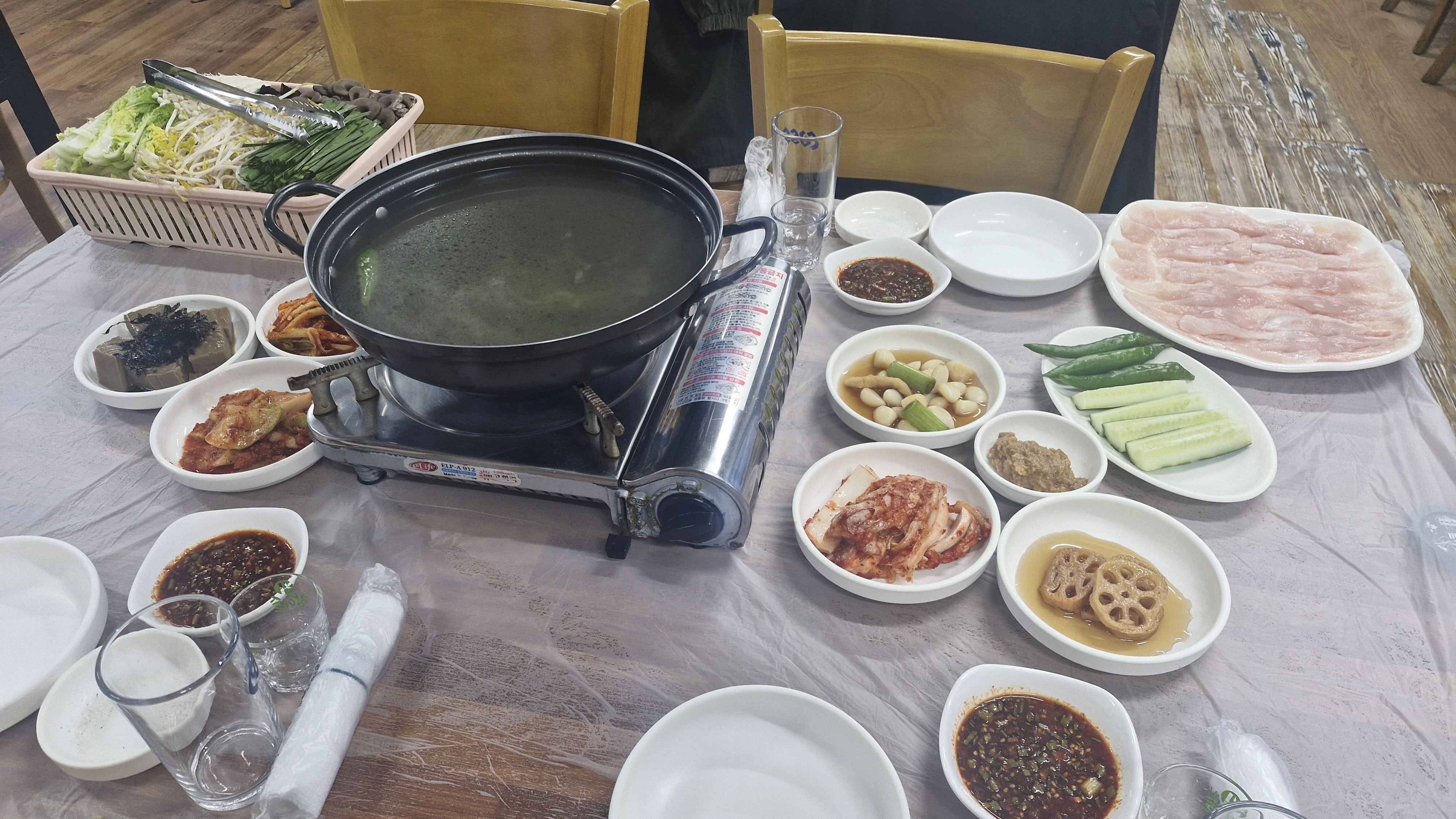 휴계농장의 토종닭 샤브샤브 메뉴 구성은