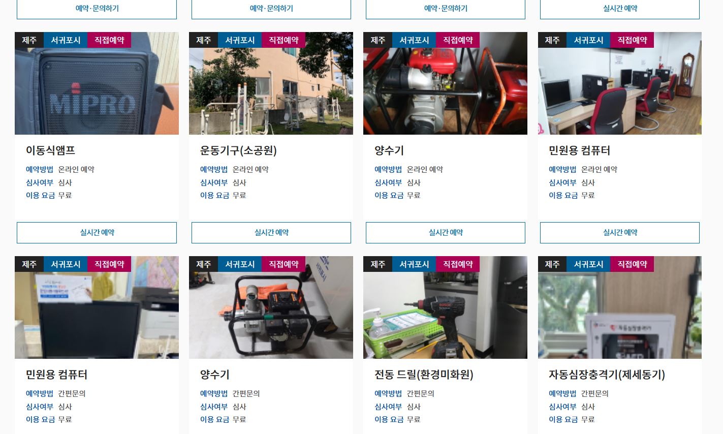 • 물품 대여: 공공기관이 보유한 빔프로젝터, 카메라, 테이블 등