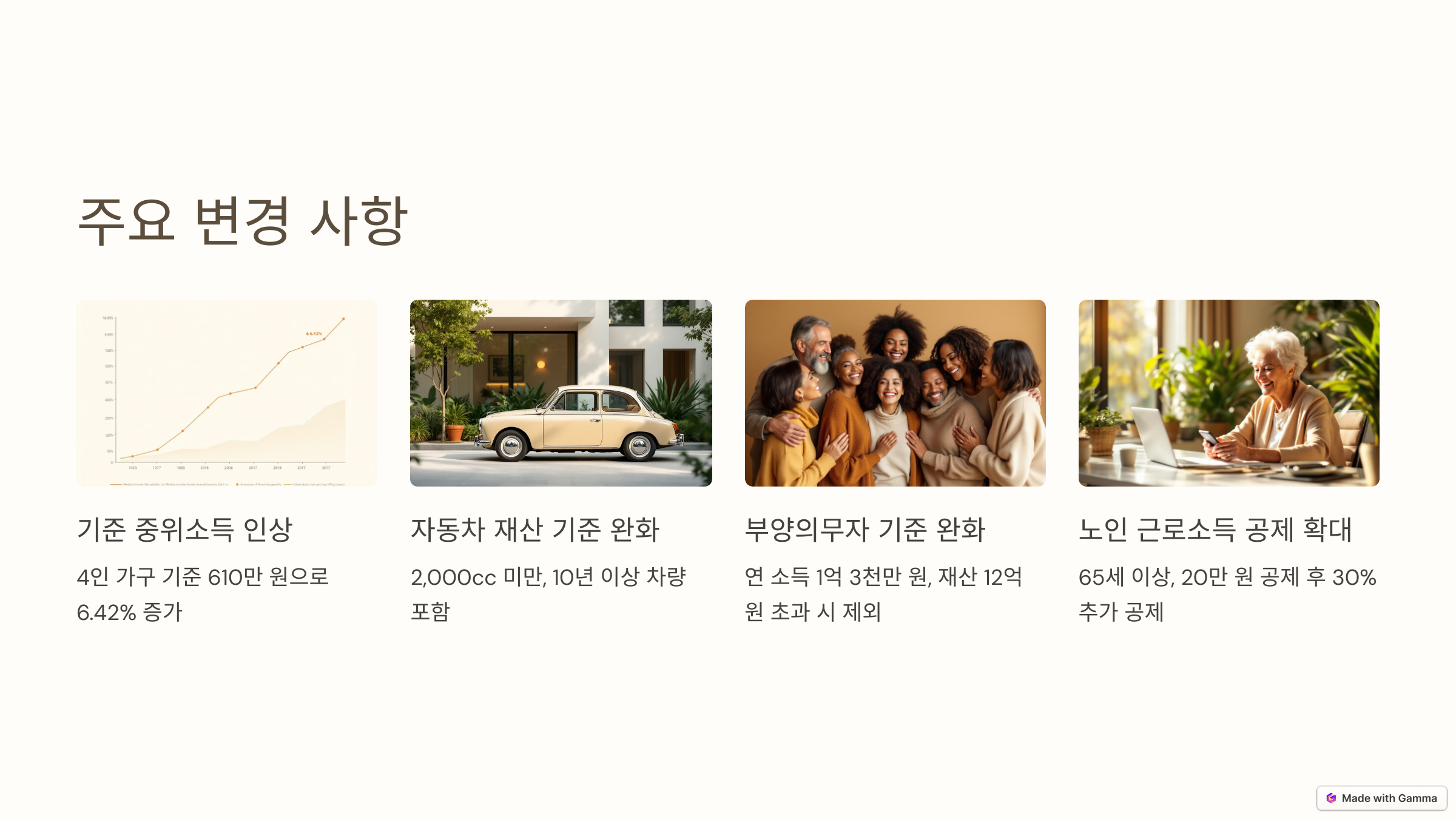 2025년에는 기준 중위소득이 6.42% 인상되어, 4인 가구 기준으로 월 573만 원에서 610만 원으로 증가했어요. 이는 역대 최대 인상률로, 더 많은 분들이 혜택을 받을 수 있게 되었답니다.
