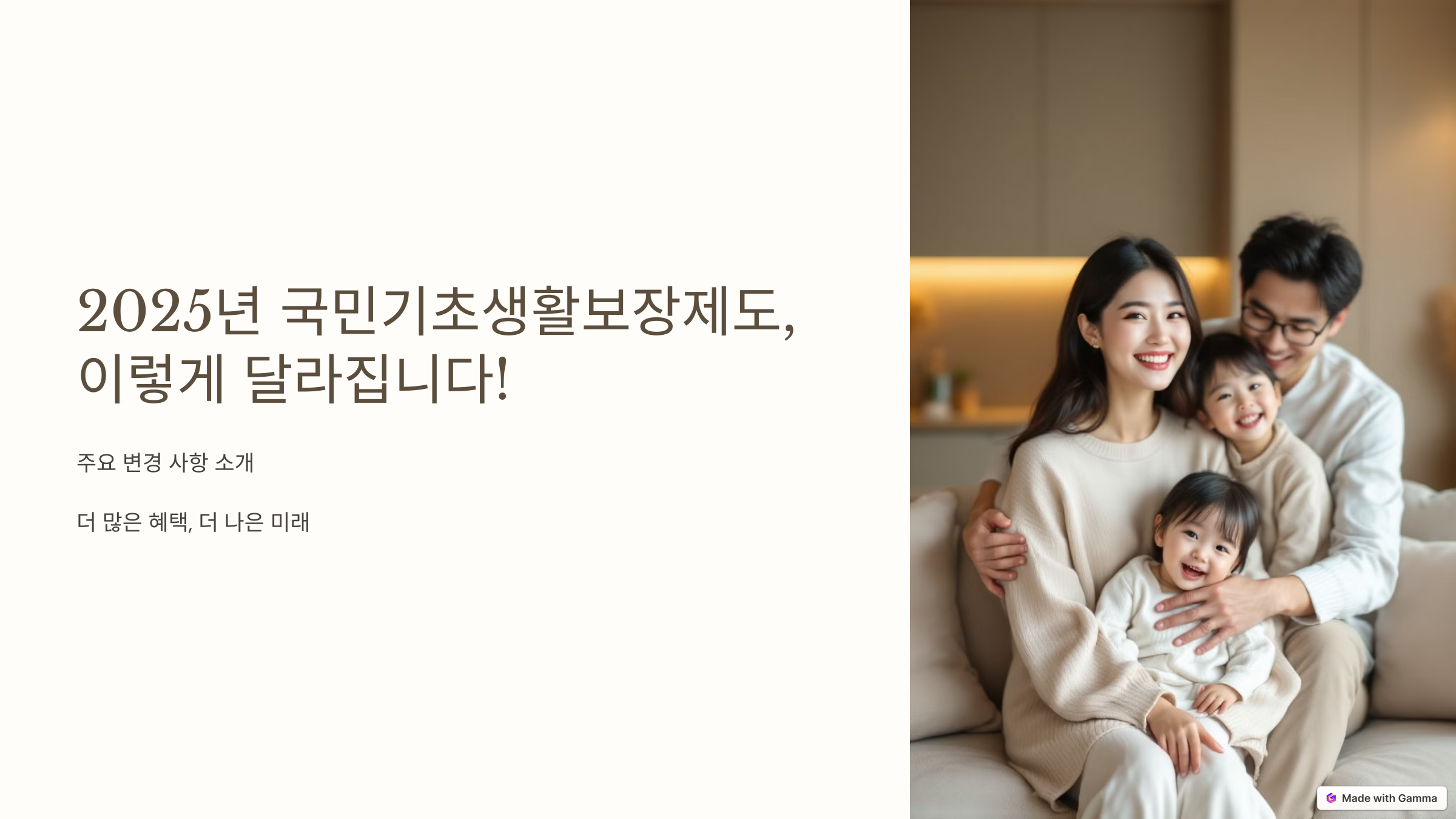 안녕하세요, 여러분! 2025년부터 국민기초생활보장제도에 많은 변화가 생겼습니다.