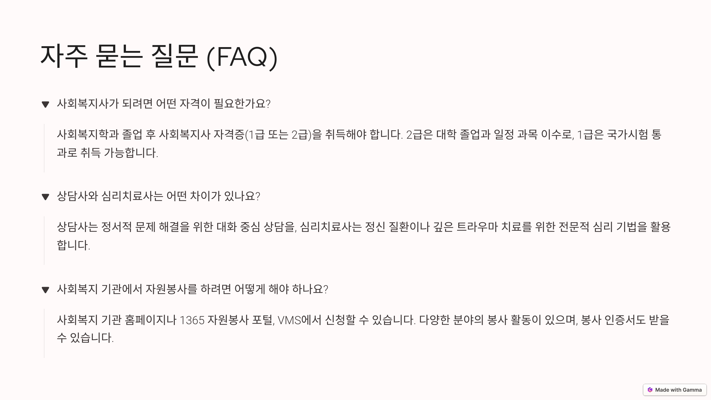 만약 여러분도 사회복지 분야에서 일하고 싶거나, 봉사활동을 해보고 싶다면 가까운 복지관이나 관련 기관에서 다양한 기회를 찾아보세요!