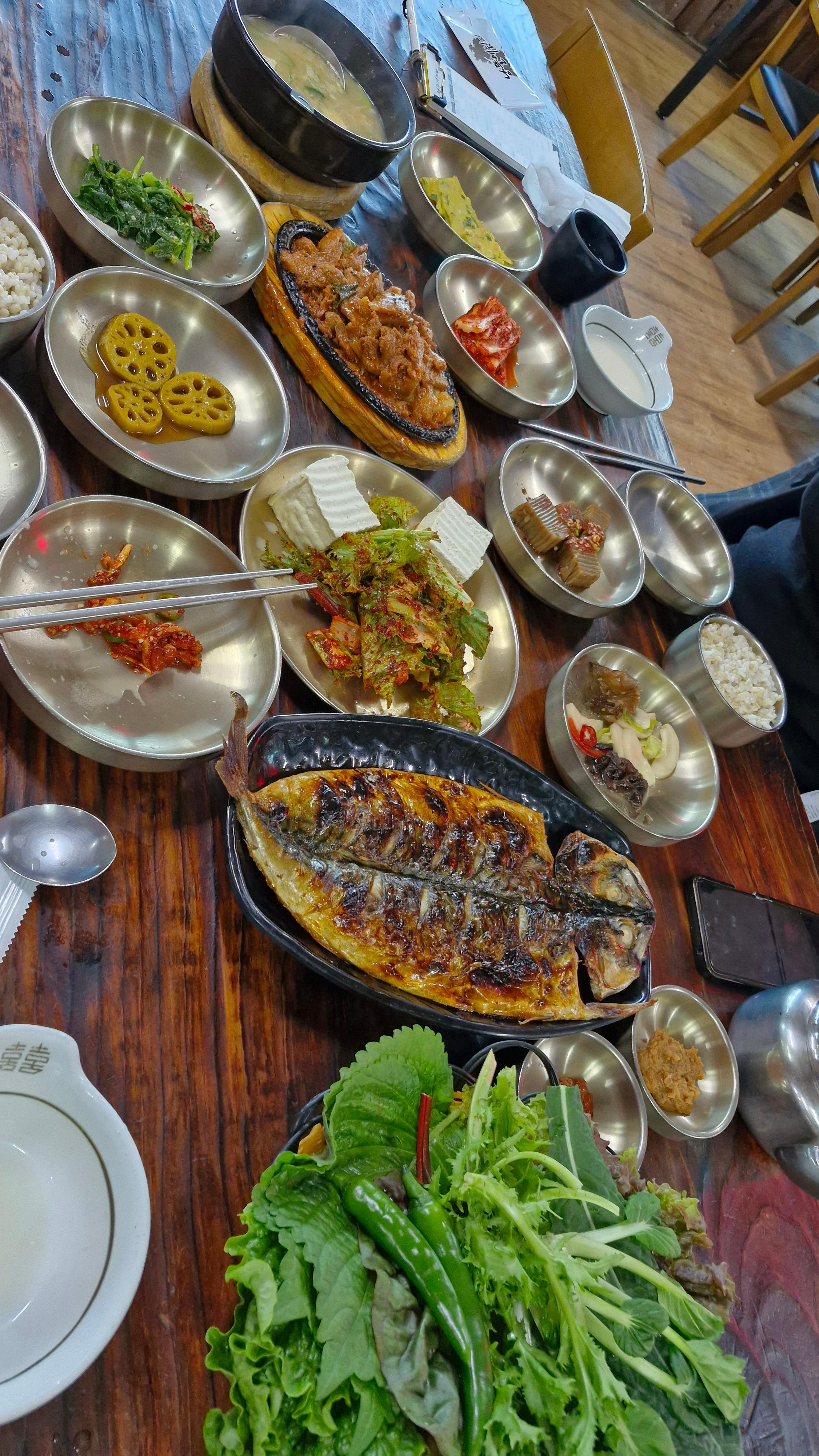 노릇하게 구운 고등어구이, 감칠맛 나는 제육볶음, 정갈한 두부무침, 그리고 신선한 모둠 쌈채소까지. 음식 하나하나가 특별히 화려하진 않지만, 정성이 깃든 담음새와 넉넉한 인심이 더해져 입맛을 사로잡는다.