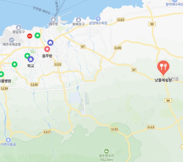 제주 공항에서는 다소 거리가 있는 지라 차량으로 30분이상을 이동해야 한다.