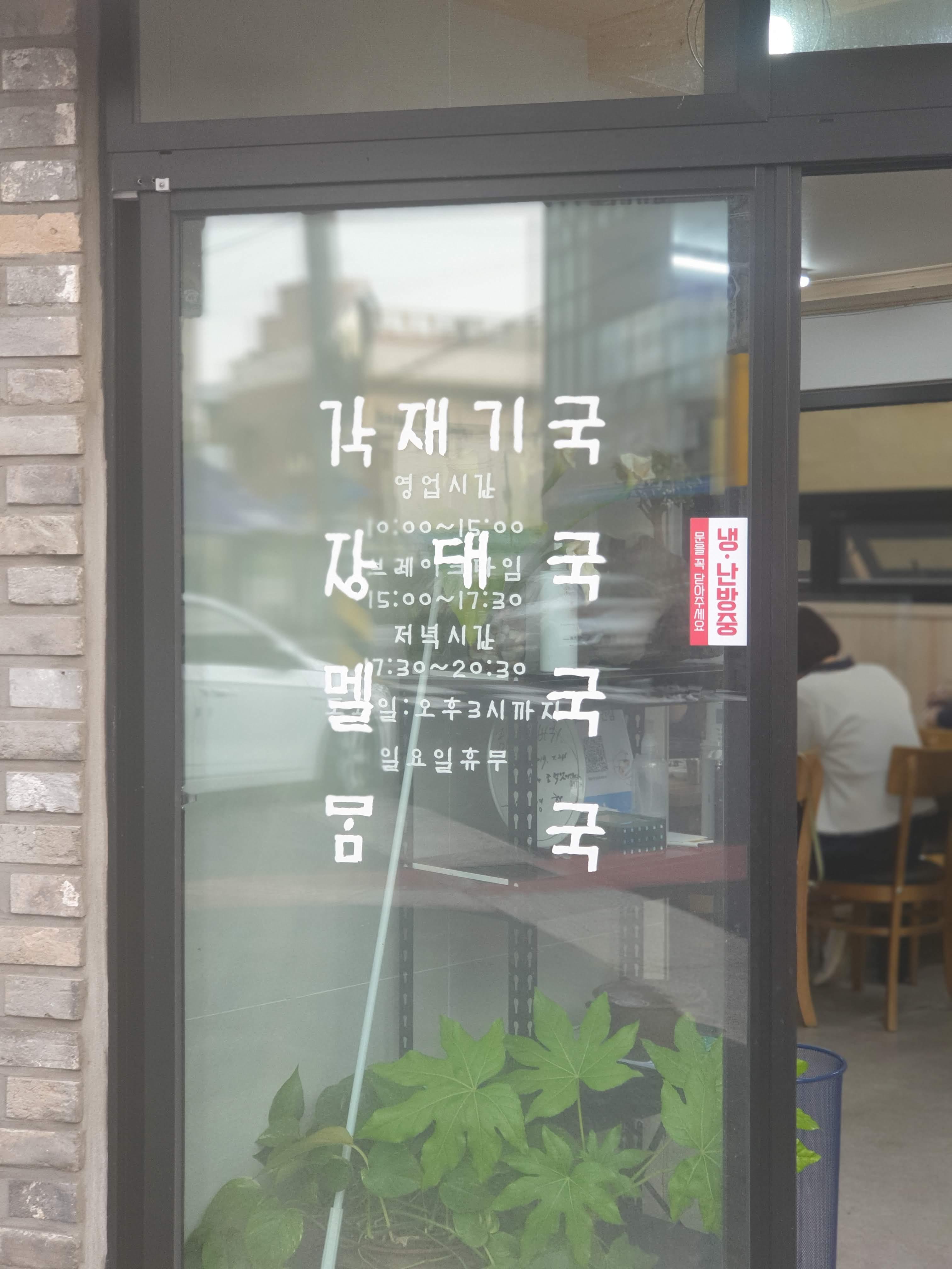 각재기국, 장태국, 멜국, 몸국이 큼직하게 적힌 유리창을 보고 있노라면,
