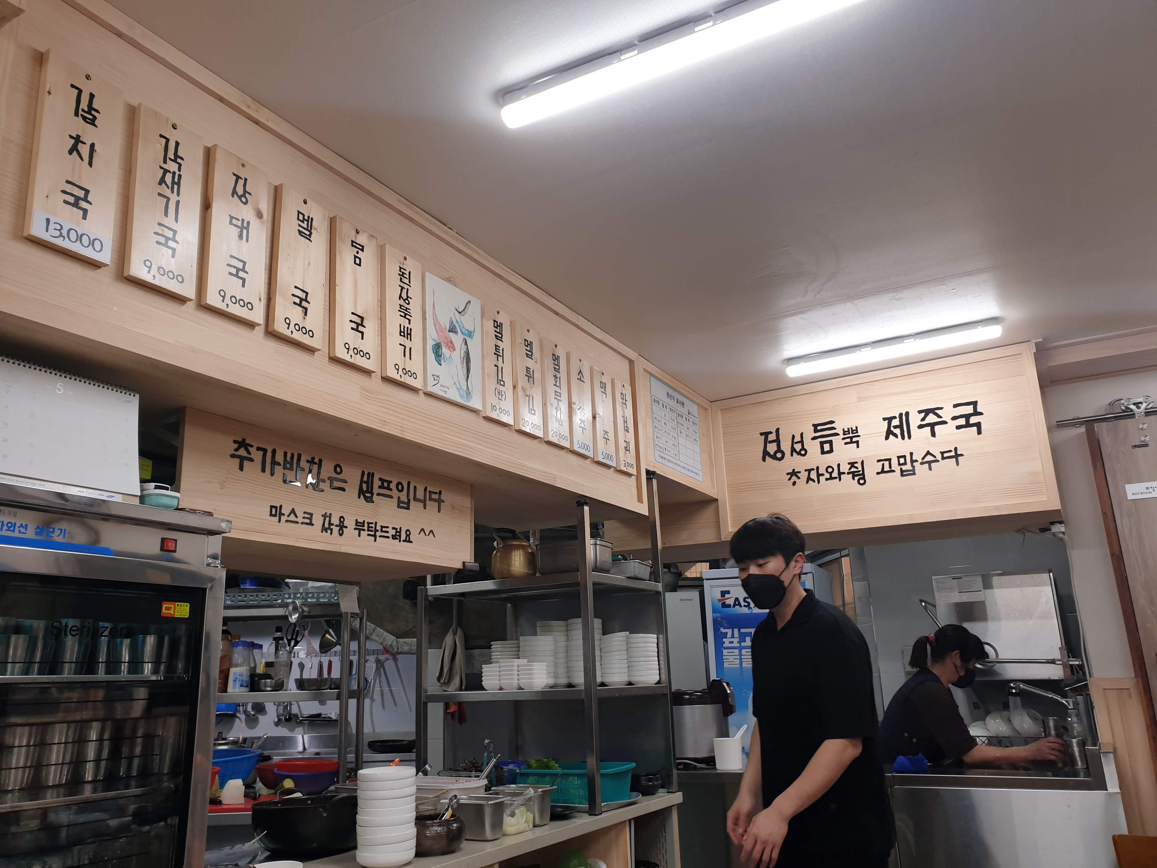 문을 열고 들어가면 활기찬 주방의 소리와 함께 제주식 생선국 진수를 알리는 구수한 국물 향이 퍼진다.