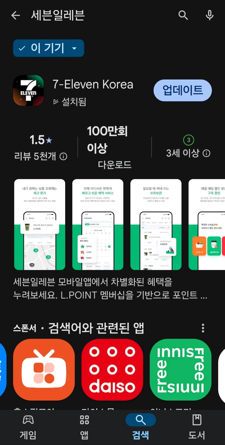 곧바로 GS25, CU, 세븐일레븐 앱을 다운받고,