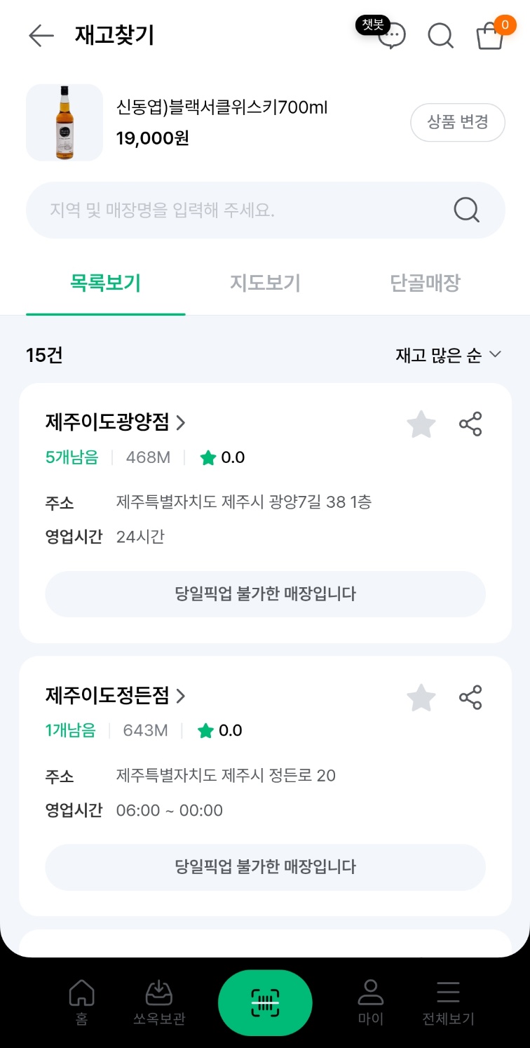 예약해둔 위스키를 찾으러 네 곳의 편의점을 방문했습니다.