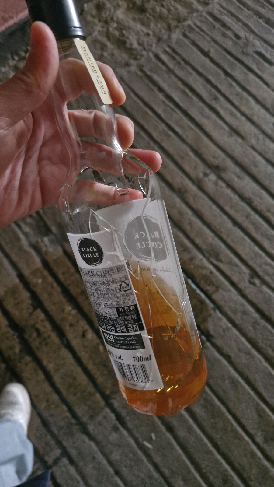 그 짧은 순간, 병이 바닥으로 떨어지는 바람에 산산조각...