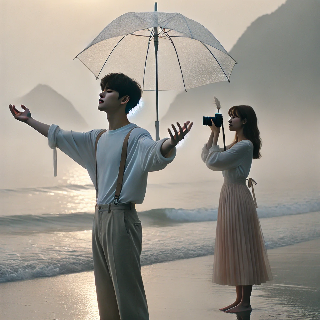 비 오는 날 바다에서 분위기 있는 사진 찍으려면 패션도 중요함!