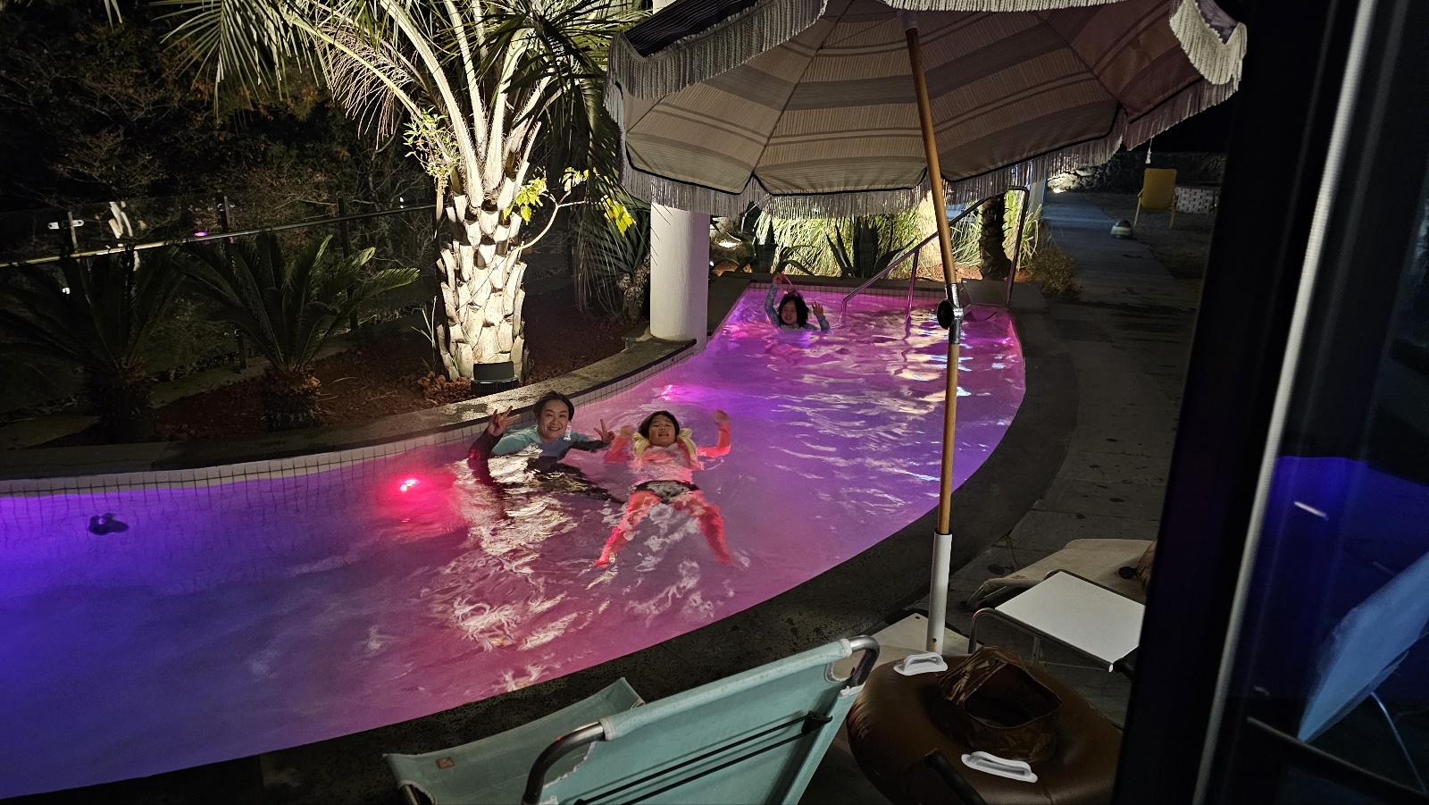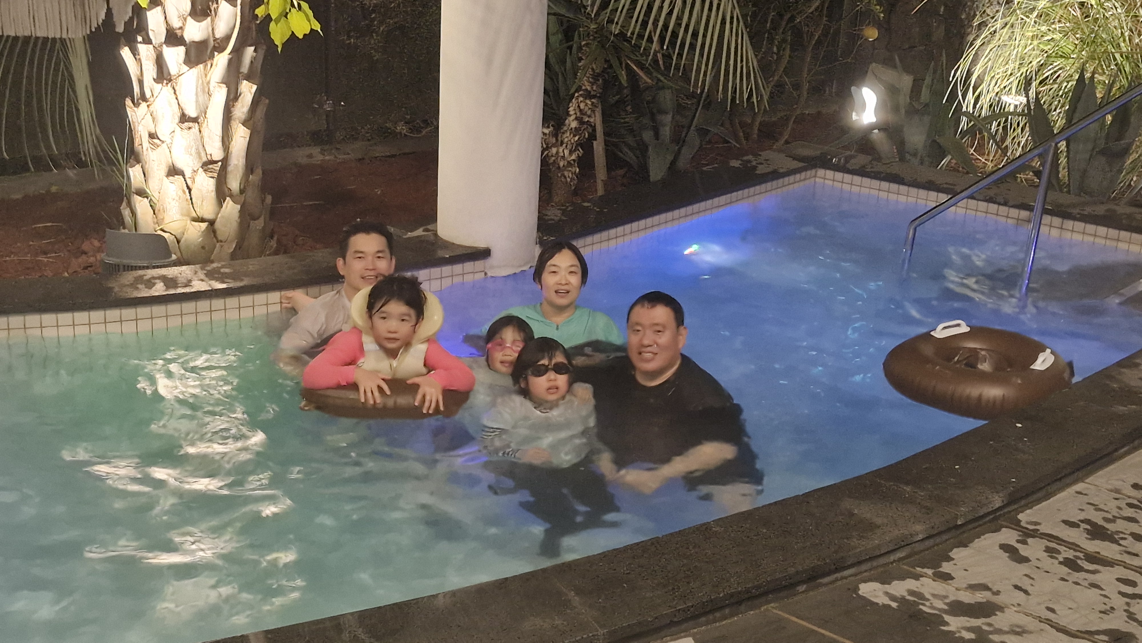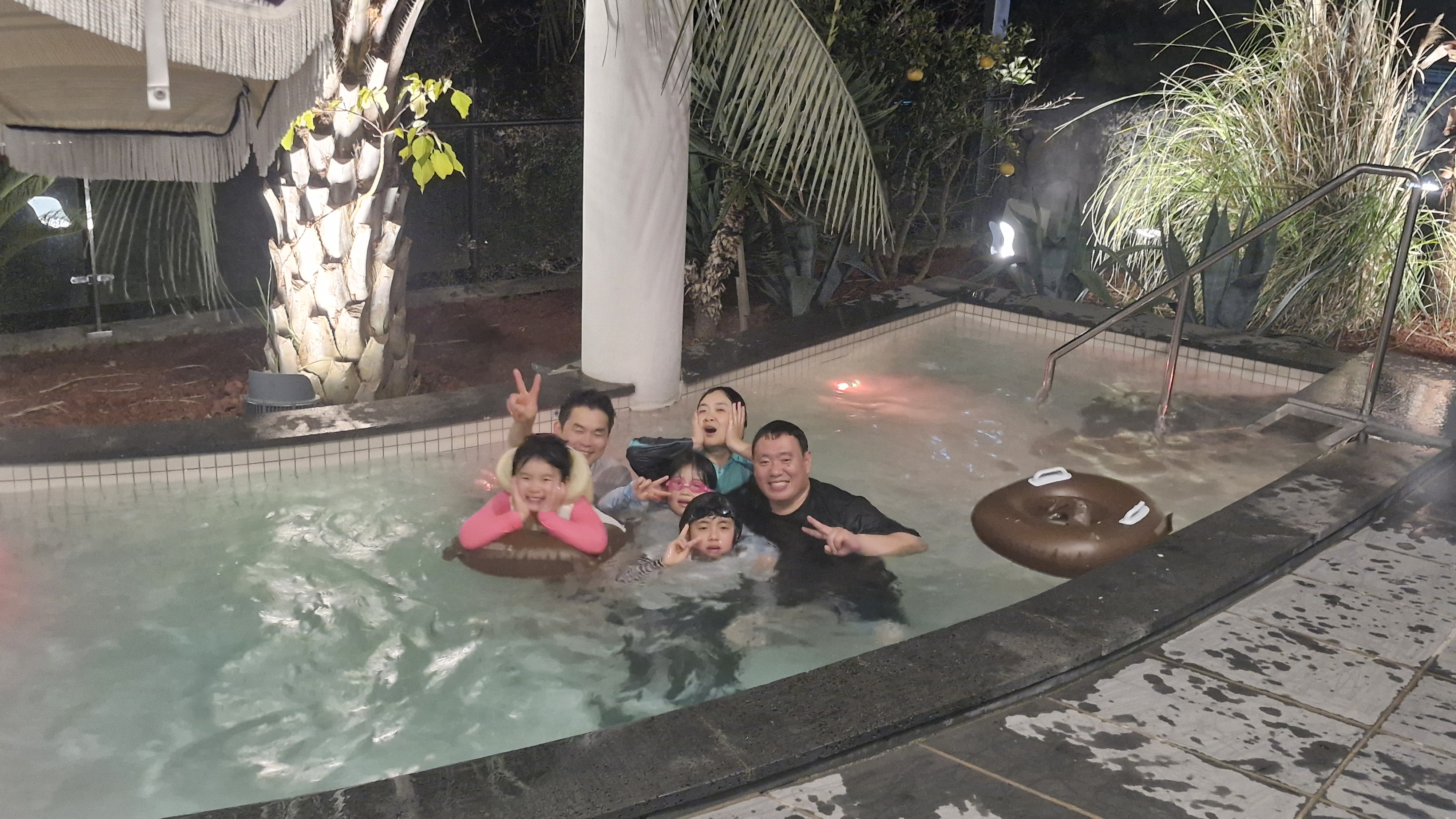 제주는 바람이 세서 풀장 물 온도가 유지되는 게 중요한데, 풍정스테이는 24시간 온수풀 운영이라 진짜 최고였어요!