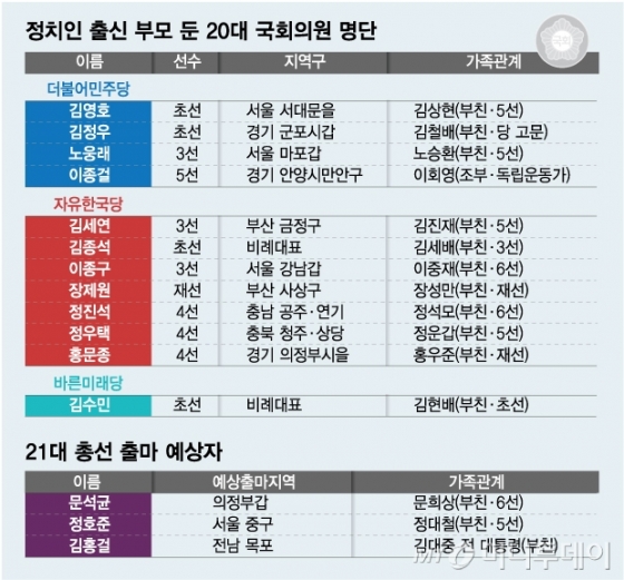 그런데도 여전히 부모의 후광을 입고 정치권에 입성하는 인물들이 계속 나오고 있습니다.