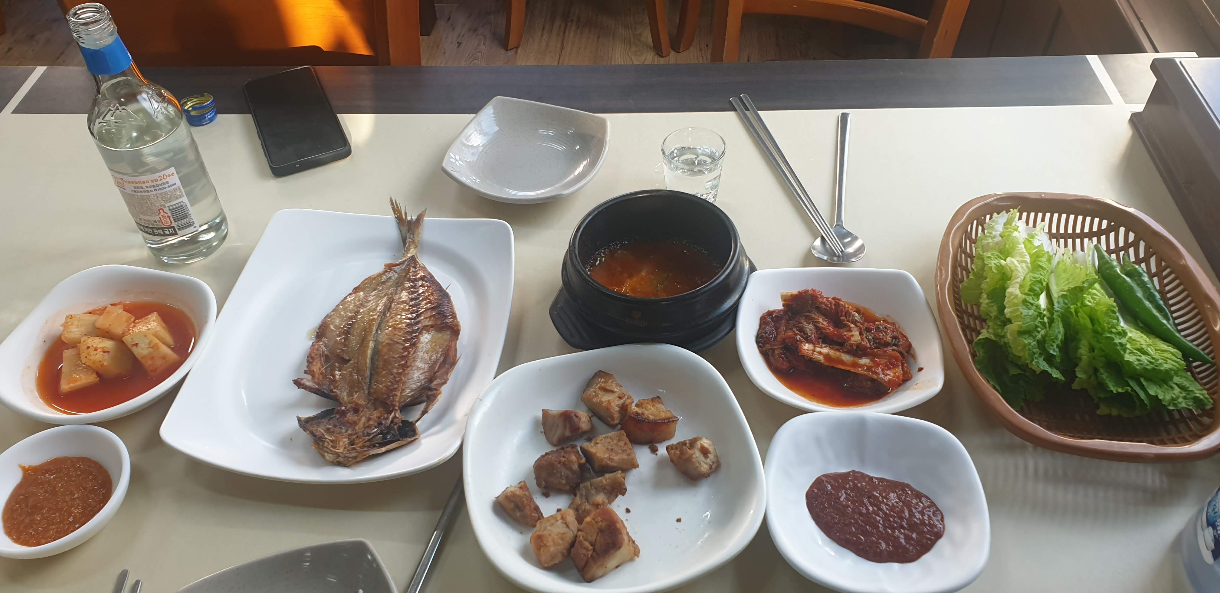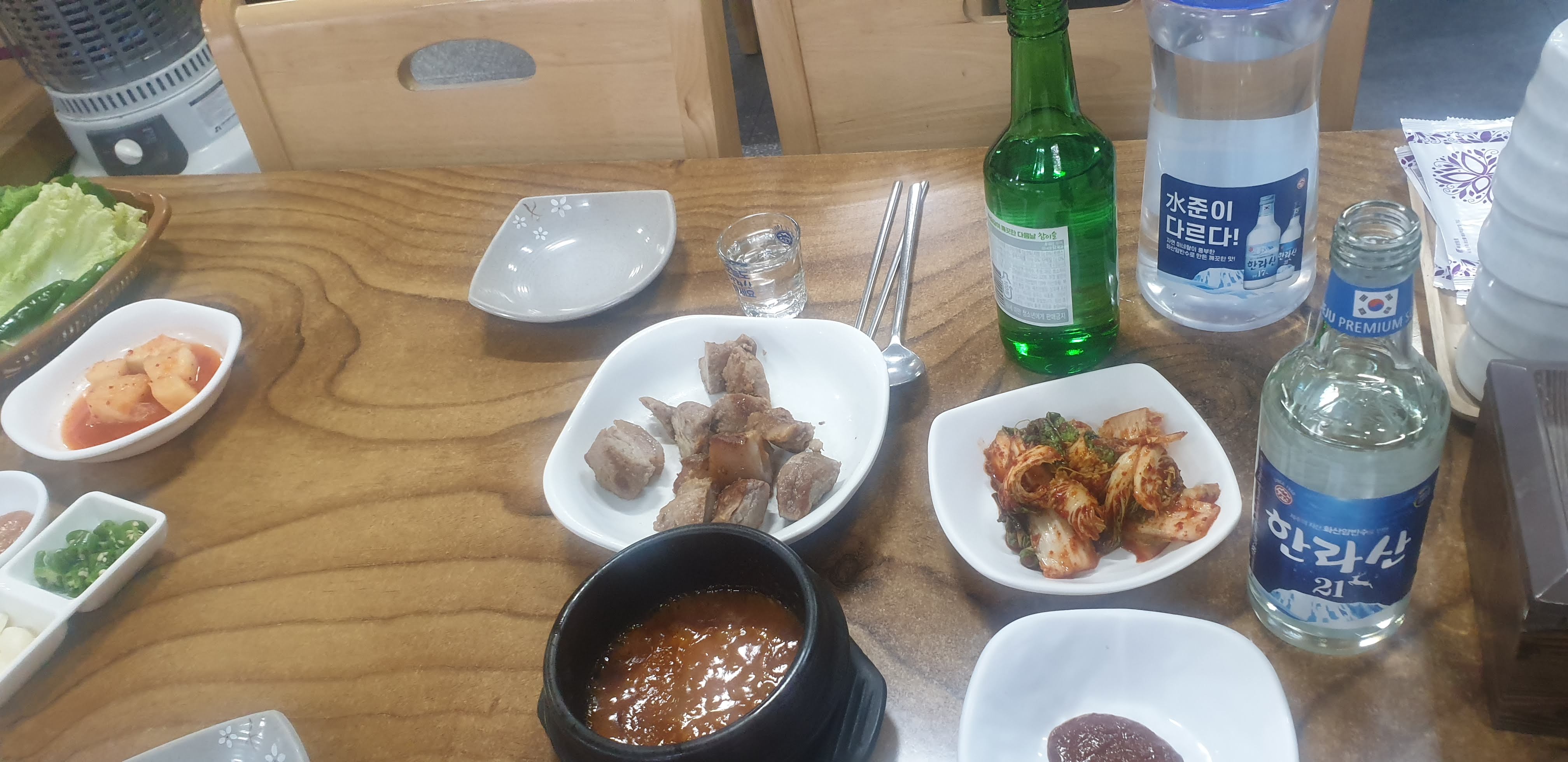 이곳의 기본 찬만 봐도 "여긴 소주 필수네" 싶습니다.